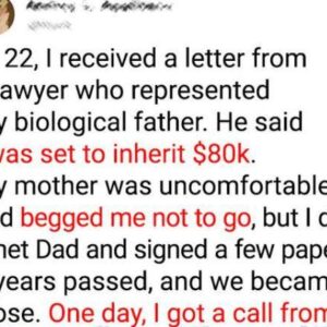 Unraveling the Truth At 22, I received a letter from a lawyer representing my biological father. He stated I was going to inherit $80,000. My mother felt…