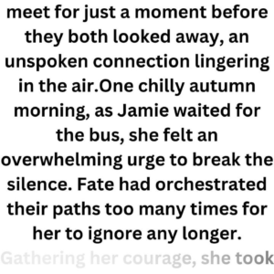 Serendipity at the Stop, After a year of silent encounters, Jamie finally introduces herself to Alex at the bus stop, discovering that fate has been weaving their…