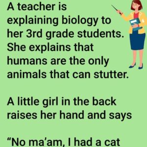 A teacher is discussing biology to her third-grade students. A teacher is discussing biology with her third-grade students. She argues that stuttering is unique to humans. A…