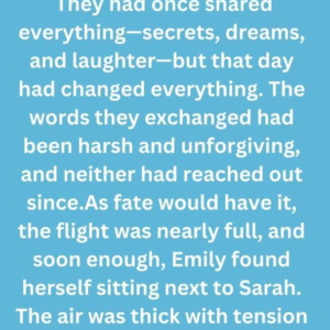 Reunited in the Skies, After five years of silence following a bitter fight, childhood best friends Emily and Sarah find themselves seated next to each other on…