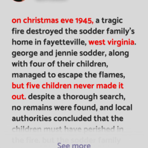 The Unsolved Mystery of the Sodder Children, On Christmas Eve 1945, a tragic fire destroyed the Sodder family’s home in Fayetteville, West Virginia. George and Jennie Sodder,…