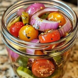 Pickled Cherry Tomatoes, Red Onions, and Cucumbers Ingredients: – 1 pint cherry tomatoes – 1/2 red onion, thinly sliced – 1/2 cucumber, thinly sliced – 1 cup…