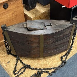 Located at a thrift store, this piece is made of hardwood, has a sturdy iron chain link, brass plates, and is hollow on the inside. Introduction The…