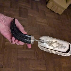 This shallow silver scooper with a Bakelite handle is lightweight and was found in an Italian villa. History of the Vintage Crumb Scoop The vintage crumb scoop,…