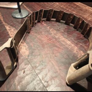 A saw-shaped tool, approximately 3 feet long and 4 inches wide, was uncovered in the garden. It is similar to a hand saw but without teeth also…