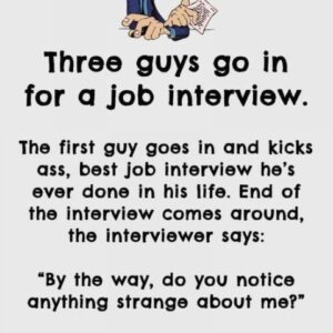 Three guys go in for a job interview Three Guys and the Job Interview Three guys go in for a job interview. The first guy does great,…