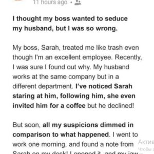 I thought my boss wanted to seduce my husband, but my suspicions dimmed when I realized what she truly desired My employer routinely treated me unfairly, which…