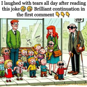 Are waiting at the bus stop A husband and wife are waiting at the bus stop with their nine children. A blind man joins them after a…