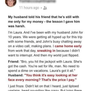 I overheard my husband telling his friend he’s with me for my money – The lesson I taught him was harsh Laura, a well situated woman, fell…