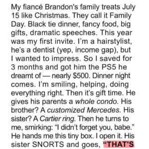 My fiancé Brandon’s family treats July 15 like Christmas—black-tie dinner, big gifts, dramatic speeches. It was my first “Family Day.” I’d saved for months to buy him…