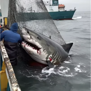 In the crystal-clear waters off the coast of South Africa, a team of marine biologists embarked on a daring mission to save a great white shark from…