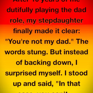 “You’re not my dad.” She said it like a switch flipped. Ten years of scraped knees, school plays, and heartbreaks—all erased. I didn’t get angry. I told…