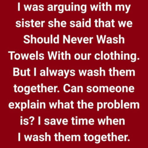 My sister Sylvie and I argued about washing towels with clothes. I thought combining them saved time, but she warned that towels’ heavy, abrasive nature could damage…
