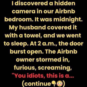 I discovered a hidden camera in our Airbnb bedroom. It was midnight. My husband quickly covered it with a towel, and we went to sleep. At 2…